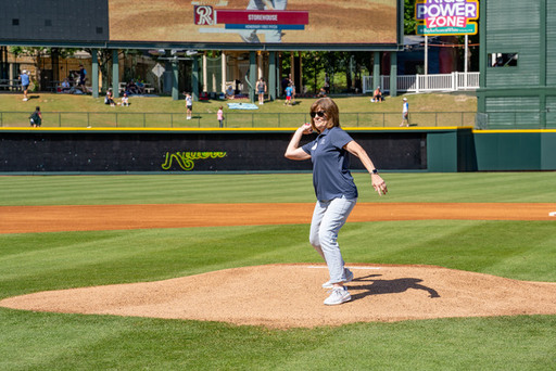 Smith, who has volunteered since 2016, was the guest of honor at the Storehouse’s 2025 volunteer appreciation event at Riders Field, where she threw out the first pitch before a Frisco RoughRiders game